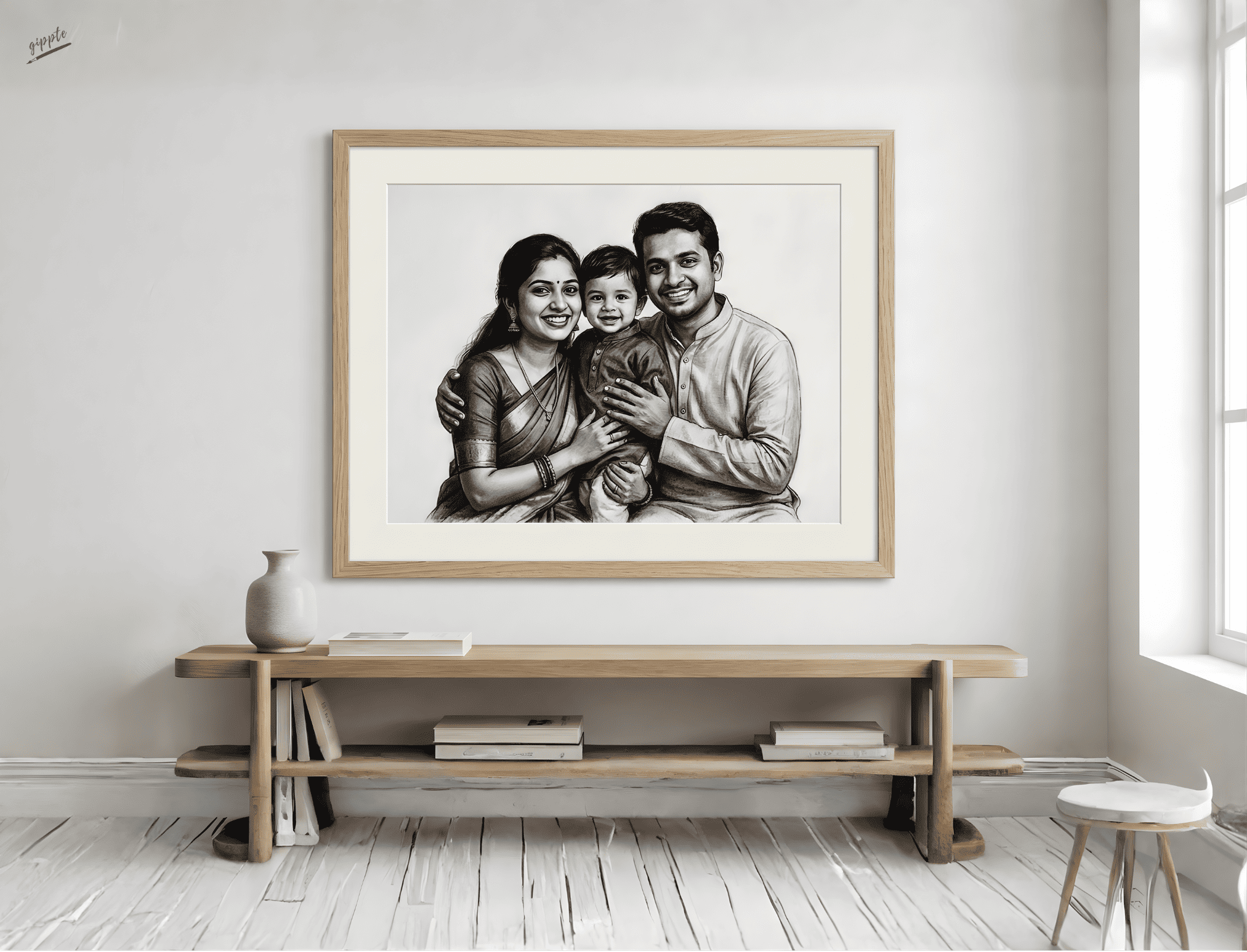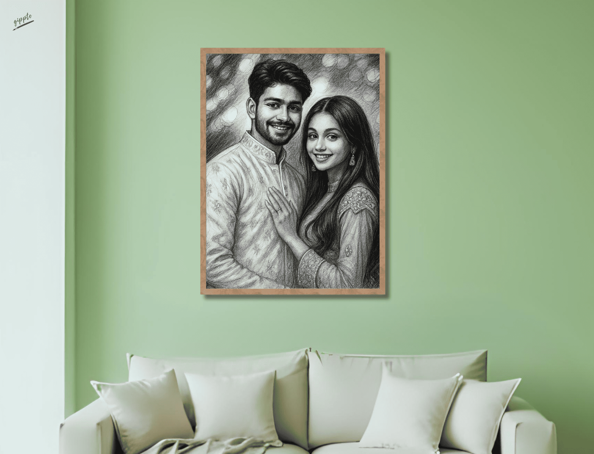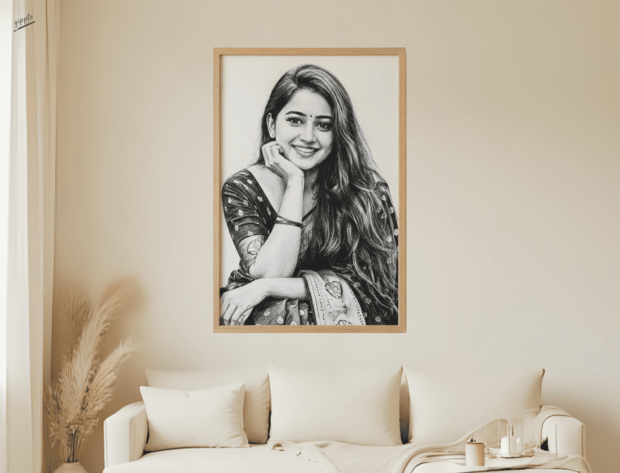 This charcoal portrait transforms your photo into a soulful creation—defined by soft strokes, bold shadows, and elegant highlights.
